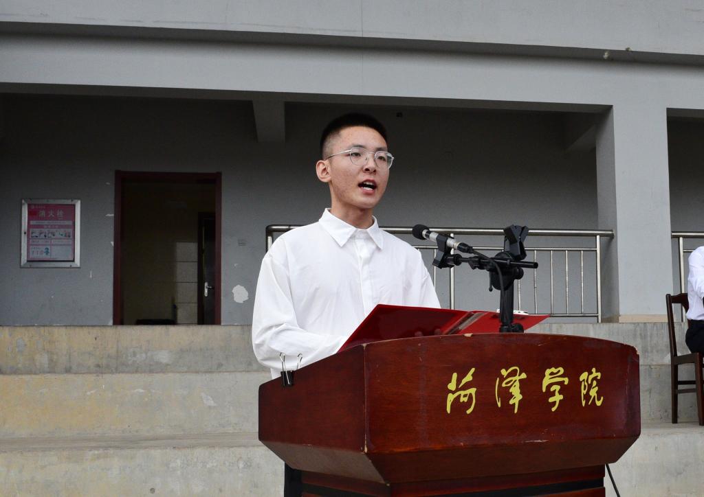 机电工程学院学生刘振玉代表全体老生发言,他分享了自己的大学生活感悟,希望与学弟学妹们一起,坚定理想信念,明确人生目标,做信仰坚定、胸怀家国,勇于创新、追求卓越的菏院人。