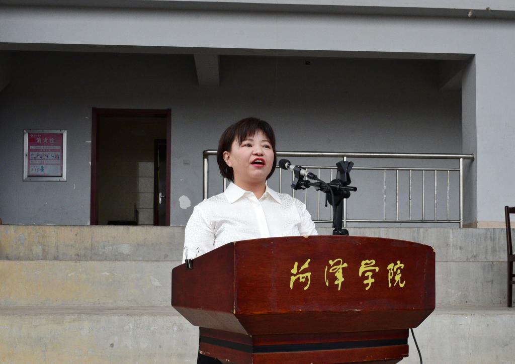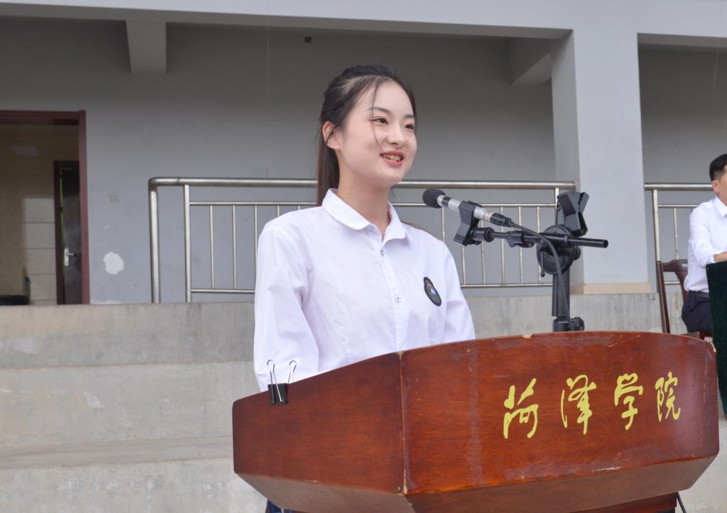 音乐与舞蹈学院学生李群代表全体新生发言,表示要在宝贵的大学时光里坚守初心、不负韶华,脚踏实地、努力学习,不断提升自己的政治站位,做一个有理想、有本领、有担当的菏院新生。