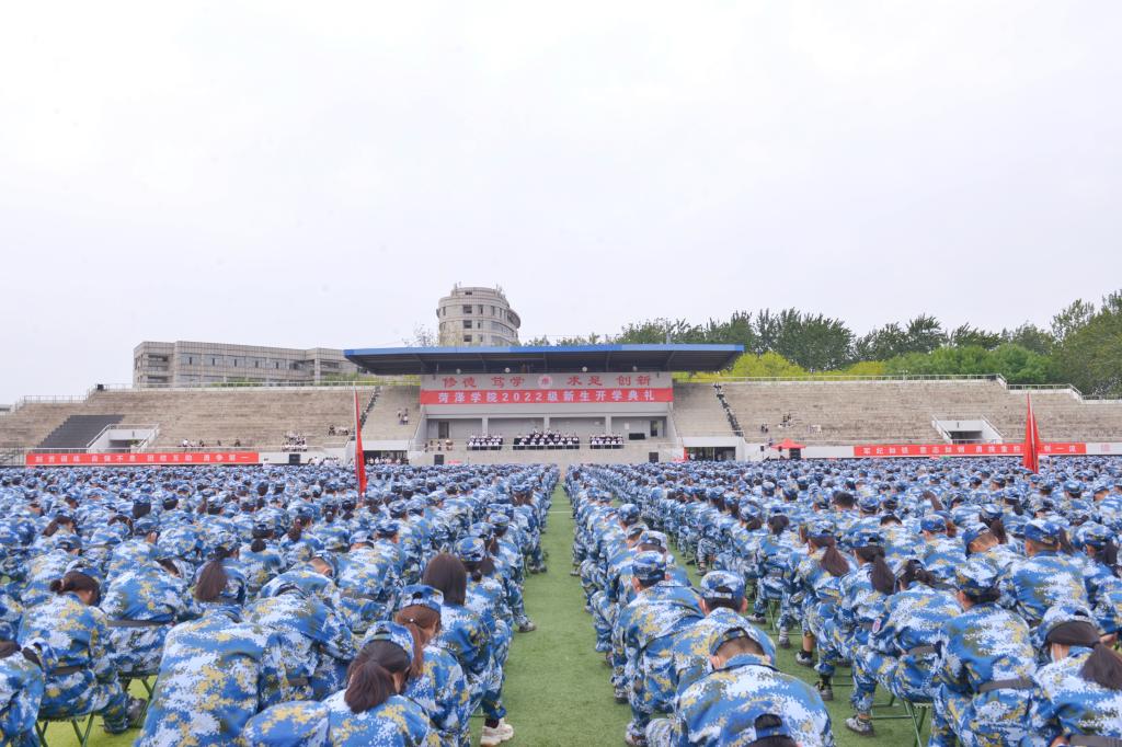 金秋的菏院天高气爽、惠风和畅。9月9日上午,我校2022级新生开学典礼在田径场举行,来自全国各地的7174名朝气蓬勃的新同学相聚在一起,共同开启人生新征程。校领导衣玉琛、赵汝坤、孟令美、黄济民、周广彦、胡尊东出席,党委委员、副院长黄济民主持开学典礼。